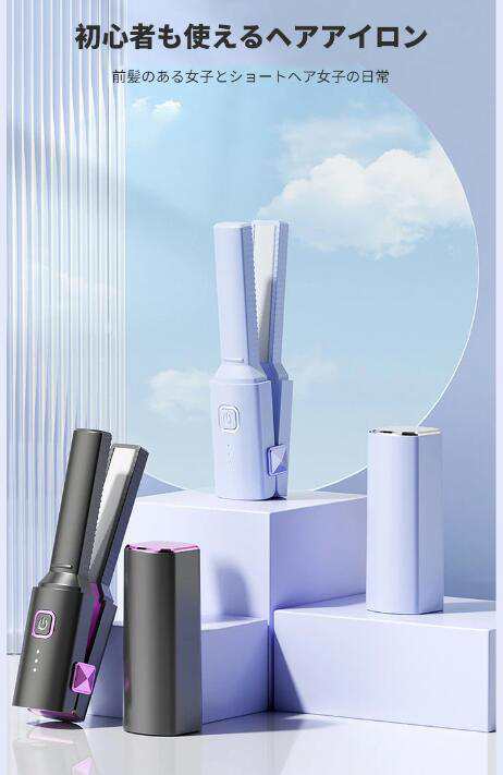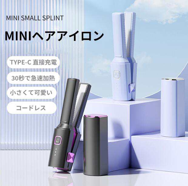 ヘアアイロン ストレート 小型 ポータブル USB 旅行用カーリング アイロン 2in1 ミニヘアアイロン 持ち運びが容易 高速加熱 使い方が簡単