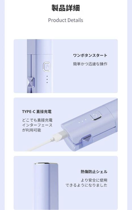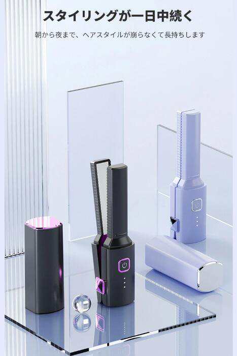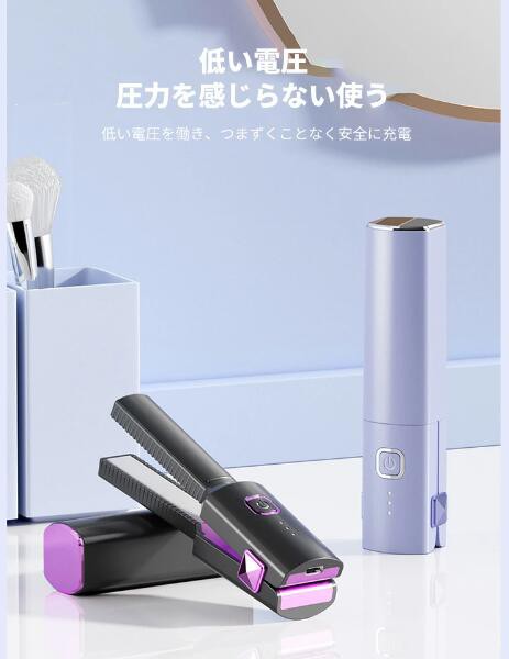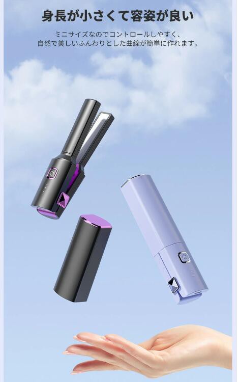 【コードレス&コンパクト】本ヘアアイロンはコードレスのデザインを採用しましたので、配線の絡まる心配がなく、より便利に使えます。ミニサイズなので、持ち運びやすく、カバンなどにも入れられます。急いでいるとき、このコードレスヘアアイロン一本があれば、移動中の隙間時間が活用できます。