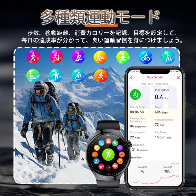 2024最新登場のSmart Watchは1.43インチHD大画面タッチパネルを採用し、画質がより鮮明にHD大画面で、通知や文字を一目瞭然!または、画面の文字盤をお好みでカスタマイズすることができ、好きな写真をスマートウォッチのデスクトップに変換可能です。更にアプリ内は50種類以上の文字盤を自由にダウンロード可能です。個性豊かでスタイリッシュなスマートウォッチを、いつでも手にすることができます。日頃仕事を頑張っている自分へのご褒美、クリスマス、新年、誕生日、記念日、母の日、敬老の日などに一番適用するプレゼント!