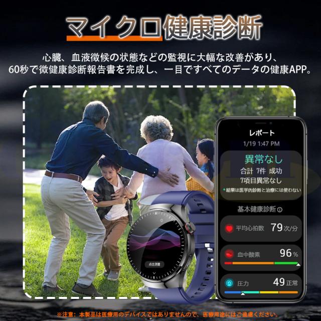 スマートウォッチ 正規品 医療級「血糖値 血液成分 体組成分析」通知機能 ECG心電図 血圧測定 心拍数 血中酸素 体温 五臓の健康管理 通話機能 2025最新 父の日