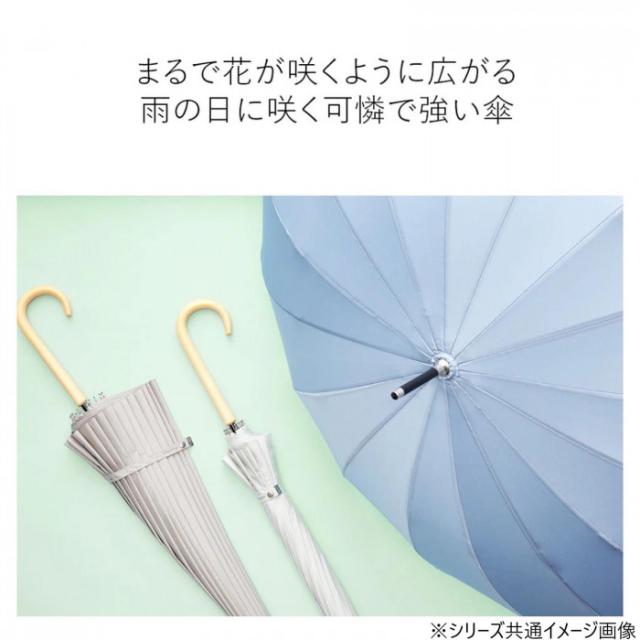 商品詳細:16本骨でシルエットも美しく、風にも強い傘です。しなやかなグラスファイバー骨を使用。1本の受骨が2本の親骨を支えることで高い耐風性を実現しました。 生産国:中国 素材・材質:生地:ポリエステル100% 商品サイズ:直径:約96cm、全長:約82cm、親骨:55cm 重量:約337g 仕様:花びらき構造耐風15m/s16本骨UVCUT約90%撥水4級
