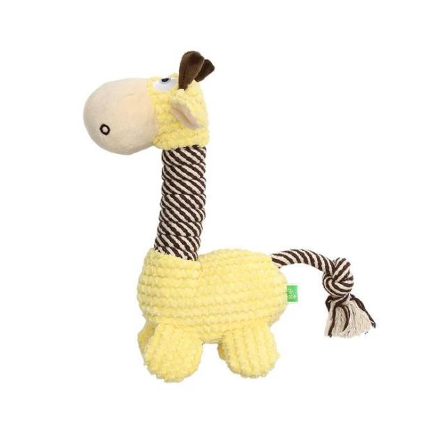 商品詳細:「ジラフ」は、スーッと伸びた長い首が可愛いキリンの形をしたぬいぐるみです。シッポにはロープ、ボディには触り心地の異なる生地を数種類使っており、柔らかいおもちゃが大好きなワンちゃんにおすすめです。「ループフレンディ」は、ワンちゃんが喜ぶツボを押さえた仕掛けがいっぱい詰まったぬいぐるみ系犬用おもちゃシリーズです。ほどよいサイズ感と優しい手触り、スクウィーカーも入っているので、音でも楽しめます。 生産国:中国 素材・材質:ポリエステルコットン 商品サイズ:30×30×12cm 重量:206g