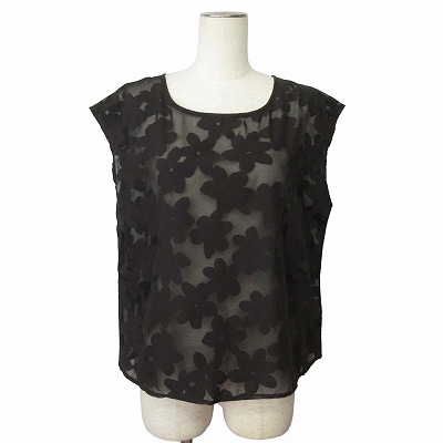 【中古】ファビア FABIA オットーカットソー ノースリーブ ブラウス シアー 花柄 LL 黒 レディース