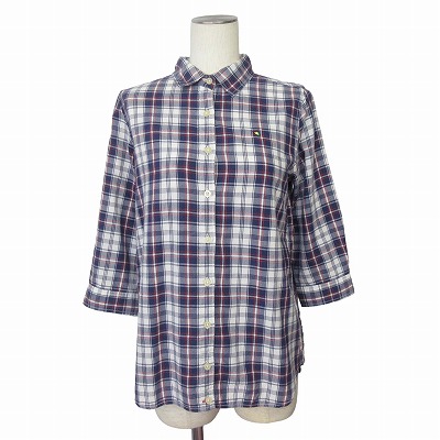 【中古】アーノルドパーマー Arnold Palmer シャツ 2WAY 七分袖 チェック 2 紺 レディース