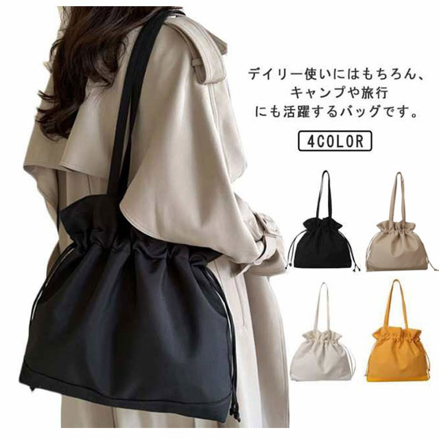 ショルダーバッグ 巾着 レディース 巾着バッグ ショルダー ナイロン トート 軽量 大容量 大きめ a4 通勤バッグ トートバッグ マチあり ドローストリング 肩掛け 鞄 きれいめ おしゃれ バッグ