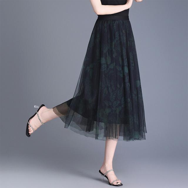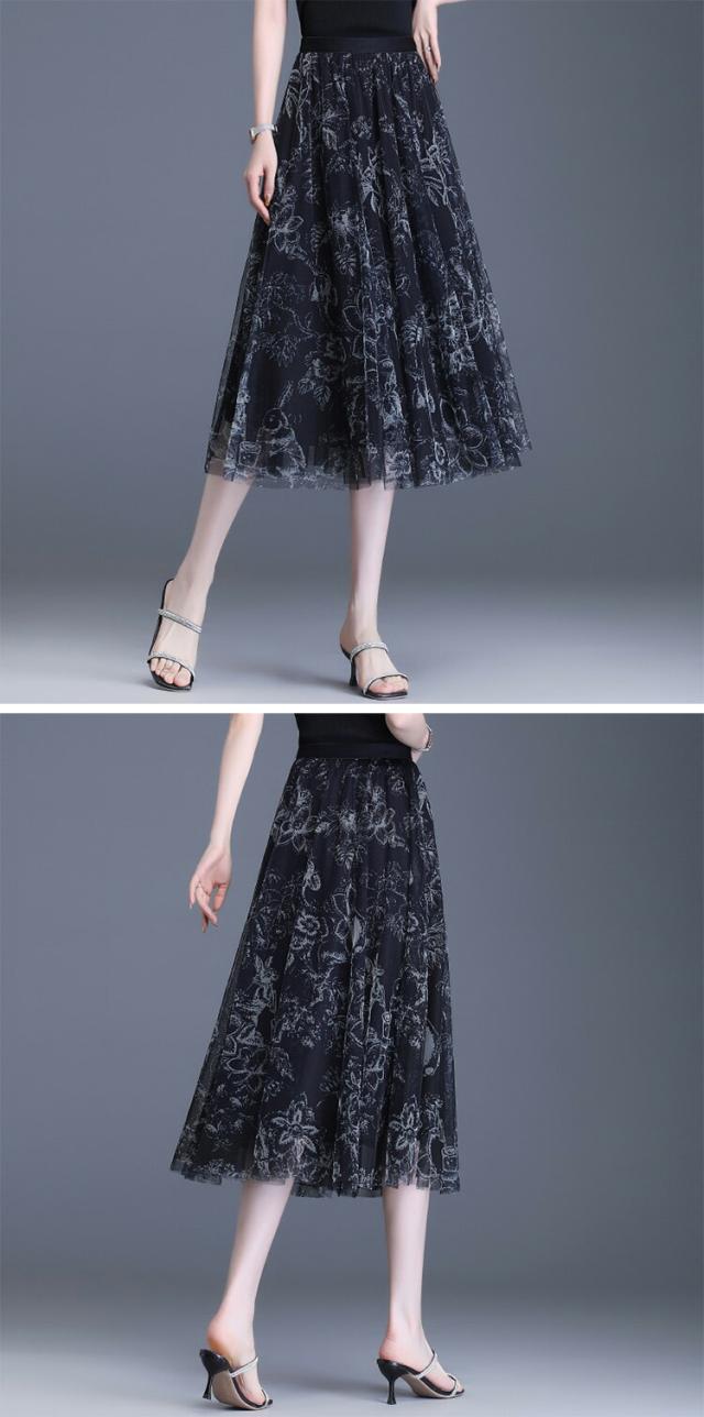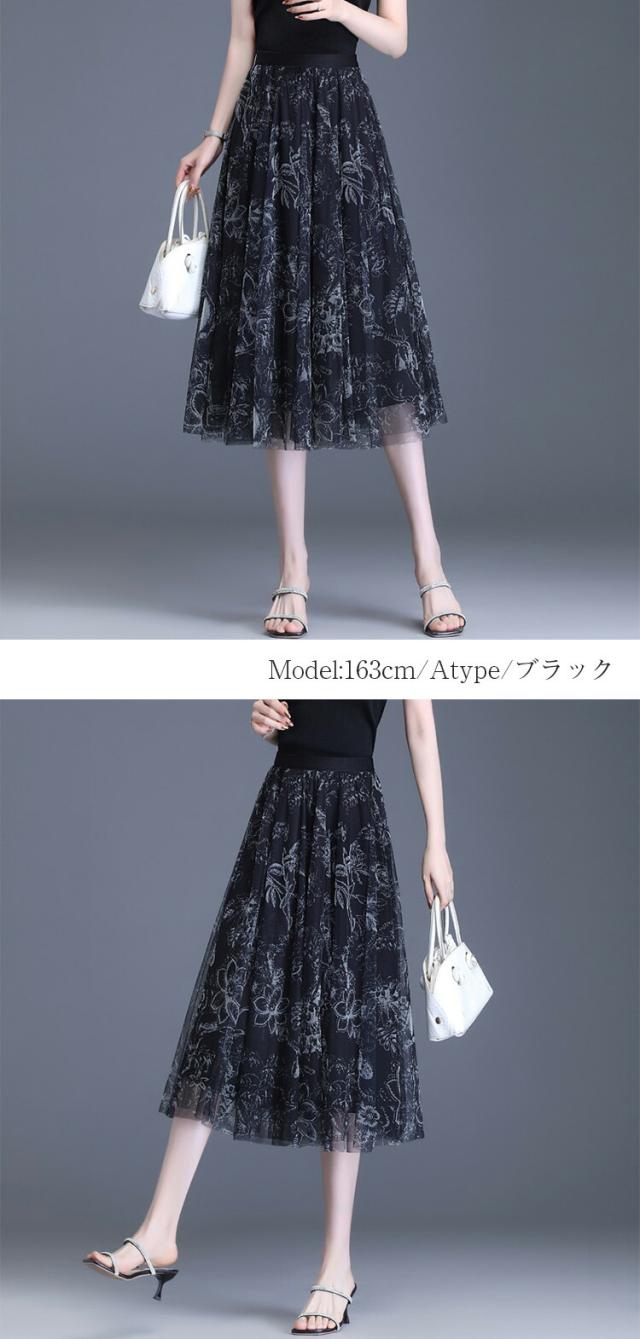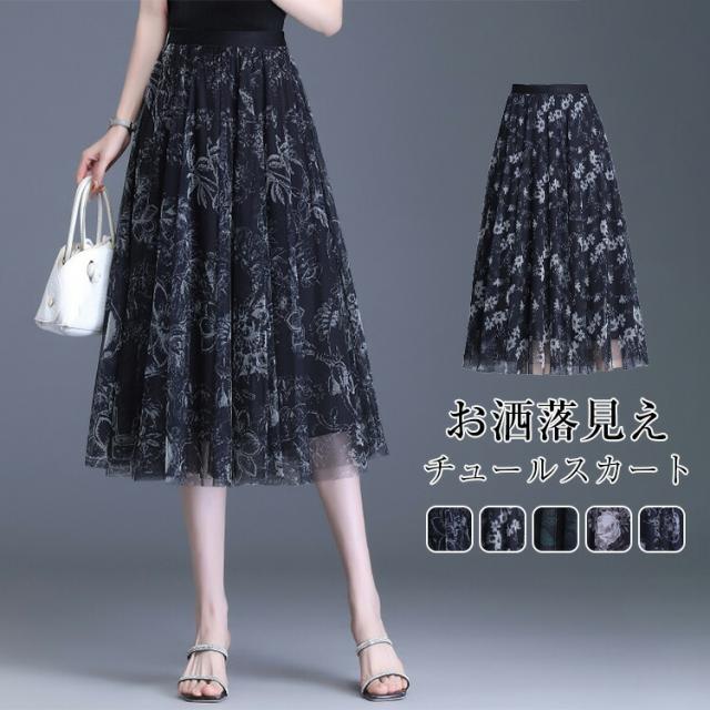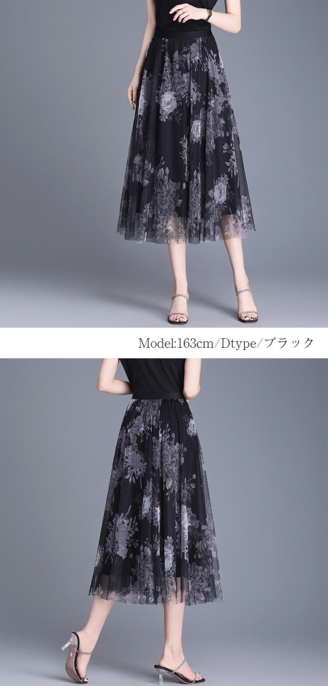 5type選べる スカート レディース 夏 チュールスカート 花柄プリントスカート ロングスカート フレアスカート ボリューム ロング丈 ミレ丈 ひざ丈 ウエストゴム Aライン 裹地付き チュール 透け感 大きいサイズ きれいめ 体型カバー 送料無料