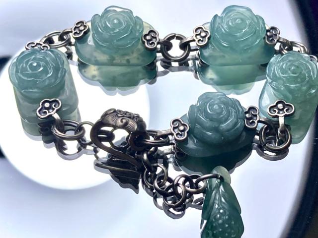 BR7-40 一点物 バラ 薔薇 グアテマラ産 本翡翠 シルバー ブレスレット