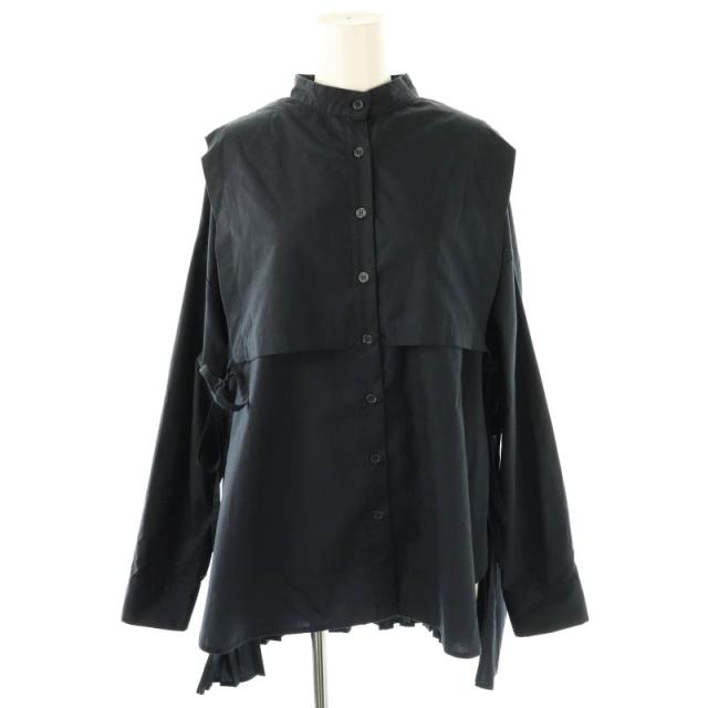 【中古】ランデブー RANDEBOO バックプリーツ 切り替えシャツ バンドカラー チュニック丈 F 紺 /MI ■OS レディース