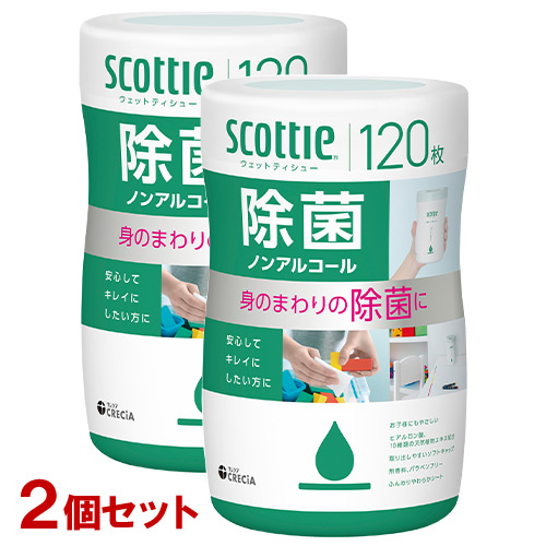 ウェットティッシュ スコッティ ウェットティシュー 除菌 ノンアルコール 120枚×2個セット scottie 日本製紙クレシア(Crecia)【送料込(北海道除く)】