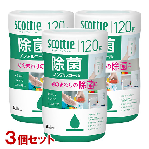 ウェットティッシュ スコッティ ウェットティシュー 除菌 ノンアルコール 120枚×3個セット scottie 日本製紙クレシア(Crecia)【送料込(北海道除く)】