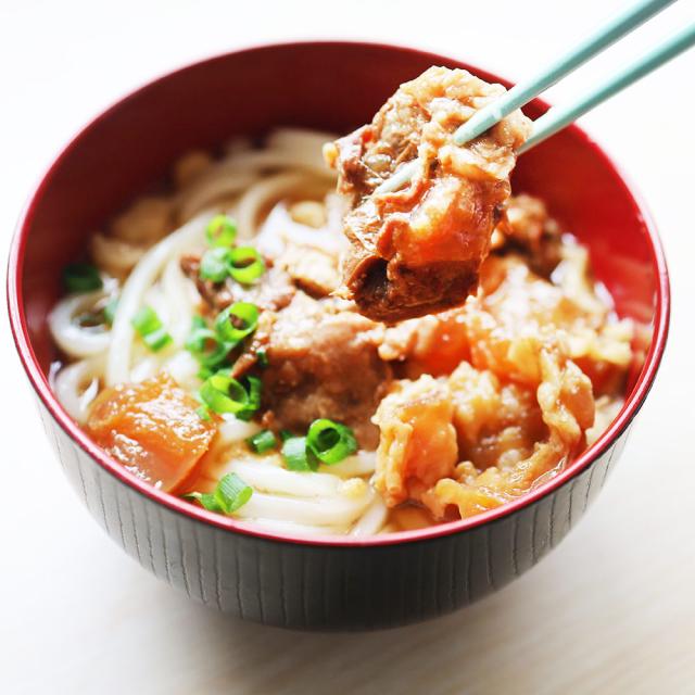 | ◇原材料 | 【牛すじ煮込み】 牛肉(国産・外国産)、果糖ぶどう糖液糖(国内製造)、醤油、食塩、米醗酵調味料、かつおぶし、生姜、醸造酢、濃縮出汁(かつおぶし、昆布)、醸造調味料(小麦・大麦含む)、酵母エキス、砂糖、魚介エキス、醸造アルコール、米、米麹、糖類、もち米、調味料(アミノ酸等) 【うどん】 小麦粉(国内製造)、食塩、加工でん粉、ph調整剤 【めんつゆ】 しょうゆ(大豆・小麦を含む)、加糖ぶどう糖液糖、食塩、砂糖、かつおぶし、いわしにぼし、米発酵調味料、こんぶエキス(さばを含む)、調味料(アミノ酸等) |