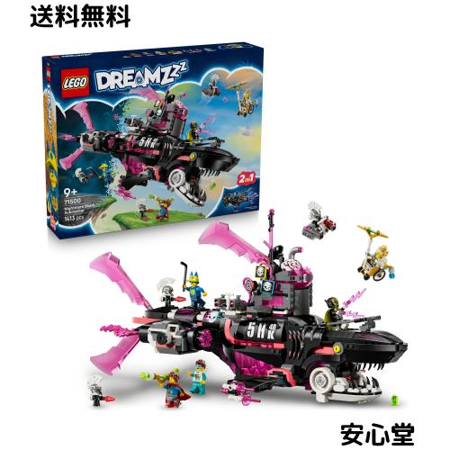 レゴ?ドリームズ 潜水艦ナイトメア・シャーク号(71500)は、マテオ、ローガン、アストリッドのドリームチェイサーたちとドリームワールドの冒険ごっこを楽しめます。(対象年齢:9才以上) ナイトメア・シャーク号を潜水艦とシュモクザメ戦艦に組み替えて遊べます。取り外せる飛行機、スタッドシューター、サメの口から発射されるミサイル、開閉式コックピット、船内の牢屋のほか、2025年発売のレゴ?ドリームズ セット(各セット別売)共通のモジュラー式シューターが付属しています。マテオ、ローガン、アストリッド、ドリームスマッシャー、ドリーマーのミニフィギュアに加え、ズィーブロブとサイバーリング3体のフィギュアが付属し、ごっこ遊びを生き生きと盛り上げます。 ファンタジーアドベンチャーが好きなお子さまへのプレゼントにおすすめです。ストーリー仕立てのわかりやすい組み立て説明書を見ながら、ドリームチェイサーたちのスリルあふれる冒険を想像して遊べます。