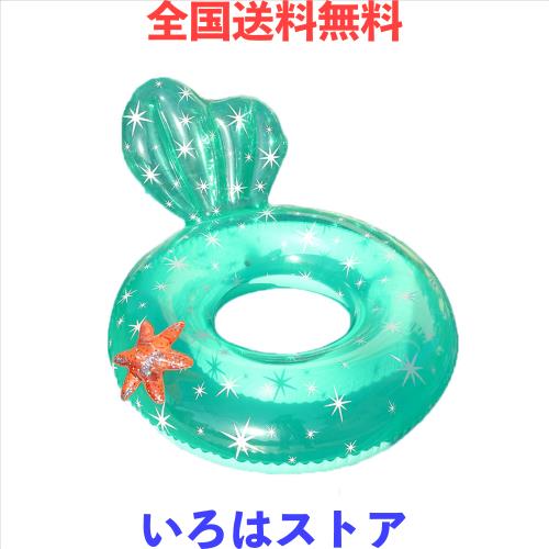 グリーン, 120#【キラキラの浮き輪】ビーチやプールで大注目を浴びることができる、オシャレなシェルリングフロート!可愛人魚姫型の浮き輪にヒトデが付いている! 海水浴やプールなどで目立つこと間違いなし!色もあざやかなので、海やプールで一層綺麗なショットが撮れます!