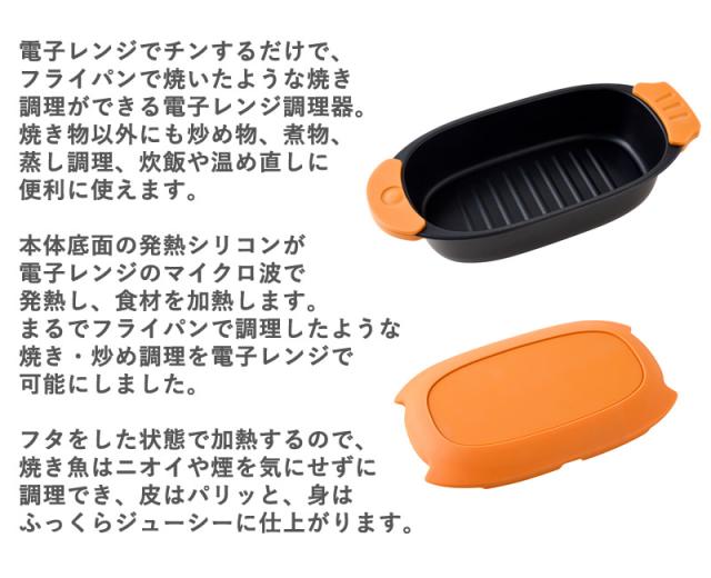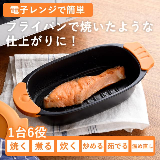 電子レンジでチンするだけで、フライパンで焼いたような焼き調理ができる電子レンジ調理器。焼き物以外にも炒め物、煮物、蒸し調理、炊飯や温め直しに便利に使えます。