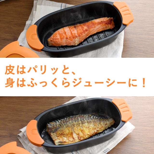 フタをした状態で加熱するので、焼き魚はニオイや煙を気にせずに調理でき、皮はパリッと、身はふっくらジューシーに仕上がります。