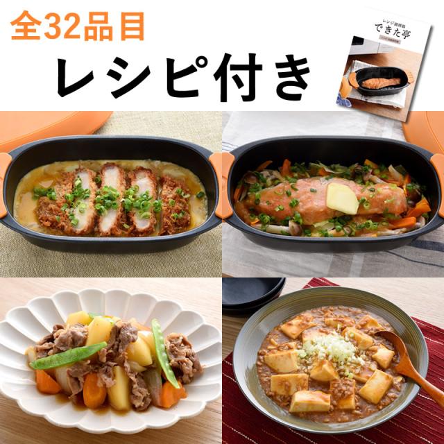付属のレシピには32品を掲載。火を使わずにメインのおかずが作れます。