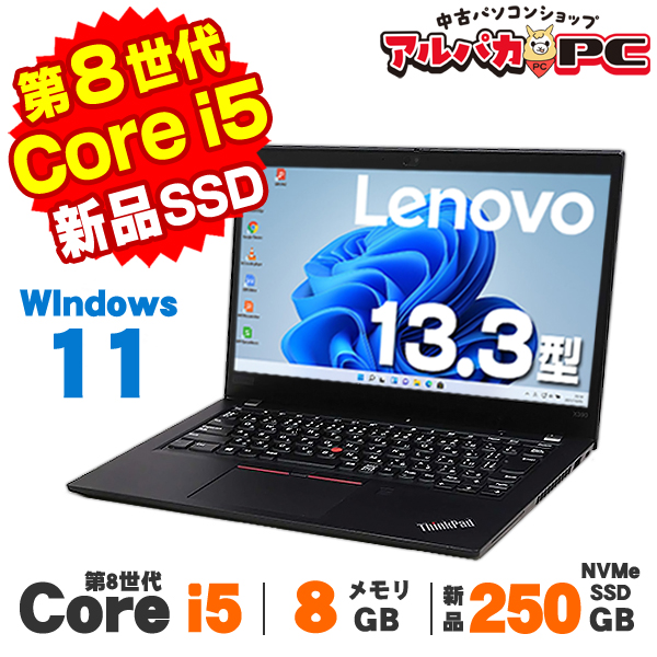 ノートパソコン 中古 Windows11 Webカメラ Lenovo ThinkPad X390 13.3インチ 第8世代 Core i5 8265U メモリ8GB 新品NVMe SSD250GB 無線LAN Bluetooth Windows11 Pro ノートパソコン Office付き