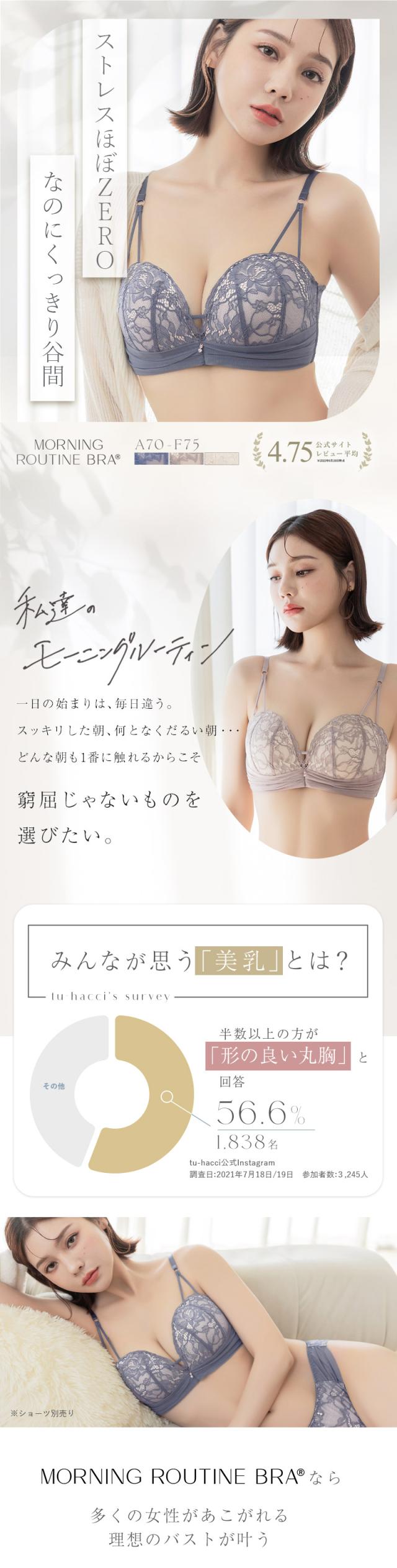 tu-hacci Bra Collection ブラ単品 「どんな朝も1番に触れるからこそ、窮屈じゃないものを選びたい。」 tu-hacciのノンワイヤーブラ"モーニングルーティンシリーズ”のWストラップタイプ。 女性の体はもっと自由に、美しくなれる。 1日を彩る、ご機嫌な朝をあなたに。 【こんな方におすすめ】 ・ノンワイヤーでも盛れるブラがほしい ・ワイヤーの窮屈感や痛いのが苦手 ・自然な丸胸に憧れる ・産後のそげ胸に悩んでいる ■「ノンワイヤー」だけど「盛りブラ」 ・Wストラップがしっかりとバストを持ち上げる ・下厚パッドがふっくらとしたハリのあるデコルテをメイク ・脇高設計でバストの横流れをしっかり防止 ・中央のキープゴムで長時間くっきり谷間 ■デザインにもこだわり ・アンダーにチュールのあしらい ・ピンクゴールドのパーツがアクセントに 可憐なフロントスタイルとレース下のヌーディな装いで女性らしさを引き立たせます。 ≫ ギフトラッピングはこちら ≪ | |
