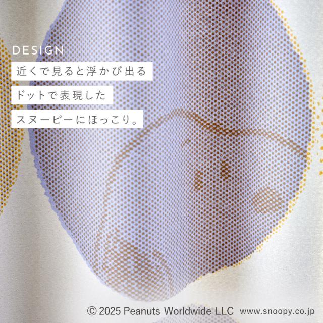 コミックの印刷のような網点でドットとスヌーピーを表現。遠くから見ると網点で表現したスヌーピーが浮かび上がる、遠目と近目で印象が異なるデザインです。