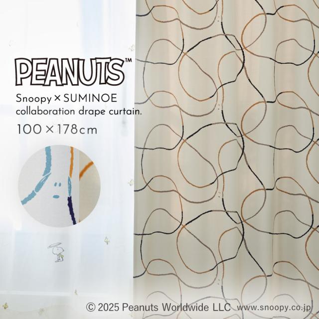 スヌーピー カーテン 遮光 100×178cm PEANUTS ピーナッツ シュルツライン スヌーピーインテリア ドレープカーテン 1枚入 日本製 洗える 北欧 柄 おしゃれ 形状記憶加工 スミノエ SUMINOE メーカー直送