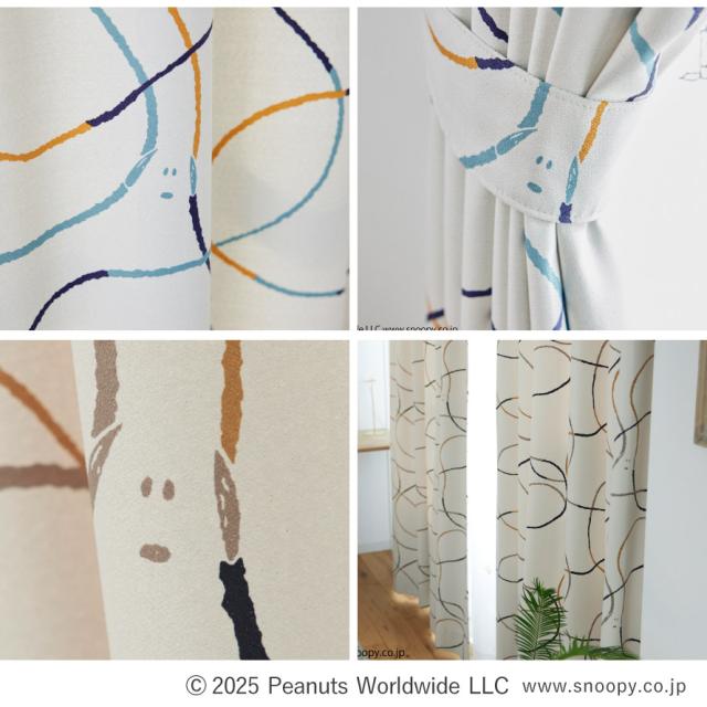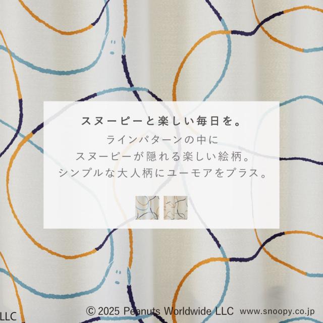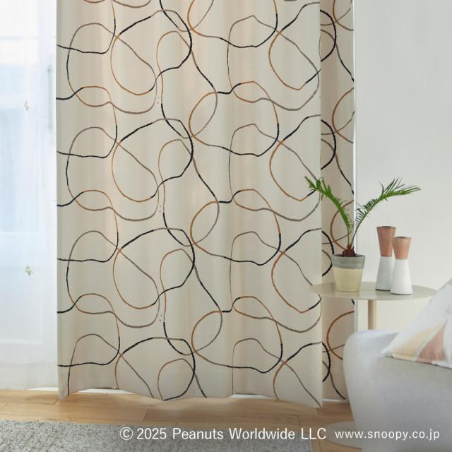 パターンの中にスヌーピーが隠れた大人デザインのカーテン。原作者のシュルツ氏が描く線、シュルツタッチに着目したラインデザイン。