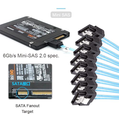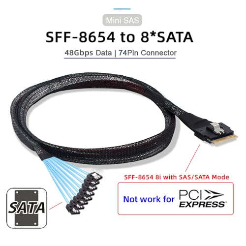 SlimSAS ホスト/RAID から SATA ターゲット ケーブル Slim SAS 4.0 SFF-8654 8i 74 ピン 1 から 8 SATA 7 ピン RAID コントローラー/ハード ドライブ ケーブル 1m