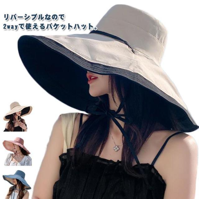 レディース UVカット バケットハット リバーシブル あご紐付き 紫外線対策 ワイヤー入り 風で飛ばない 日除け帽子 小顔効果 自由調節 アウトドア