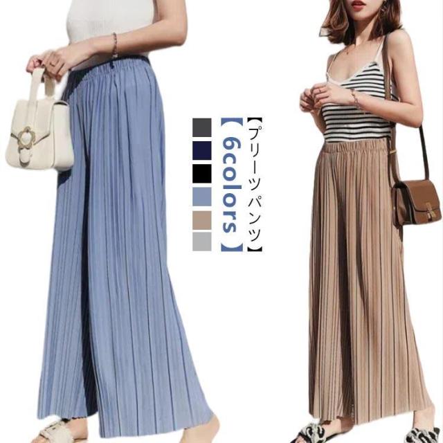 パンツ 春 ワイド プリーツ レディース ロングパンツ ワイドパンツ ウエストゴム ワイドパンツ 美脚 ストレートシルエット ボトムス 夏 9分丈 イ