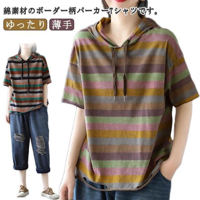 レディース ゆったり tシャツ プルパーカー パーカー コットン 半袖パーカー パーカーtシャツ 綿 フード付きtシャツ 大きいサイズ カジュアル 薄