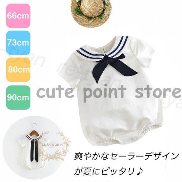 ベビー服 子供服 女の子 春 夏服 新生児 赤ちゃん 半袖 ロンパース カバーオール 出産祝い 66 73 80 90 おしゃれ ホワイト セーラー リボン おしゃれ かわいい