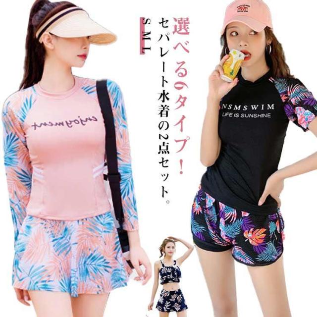 かわいい ママ水着 2点セット 6タイプ 水着 レディース パッド一体型 6タイプ おしゃれ 可愛い 体型カバー セパレート 大きいサイズ