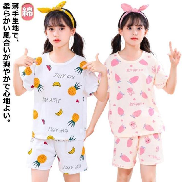 110 夏 半袖 コットン キッズ 女の子 子供パジャマ 上下セット 寝巻き ルームウェア 部屋着 パジャマ 可愛い くま柄 セットアップ 綿 おしゃ