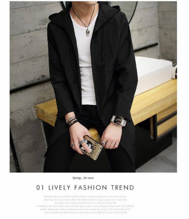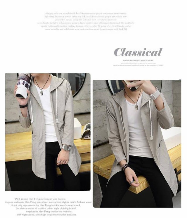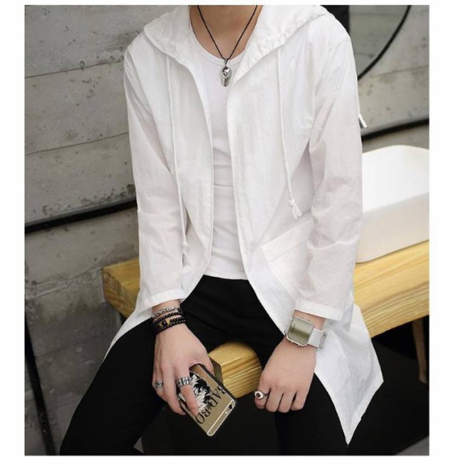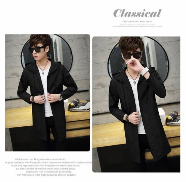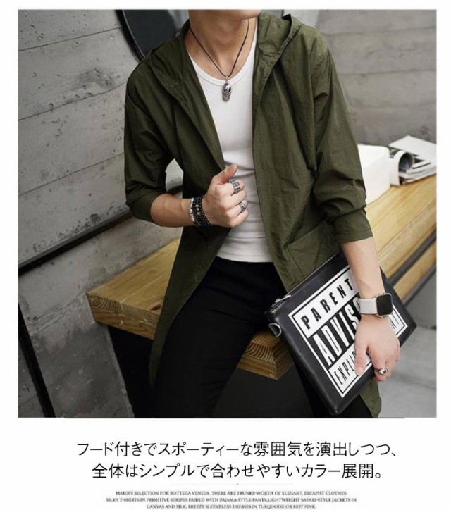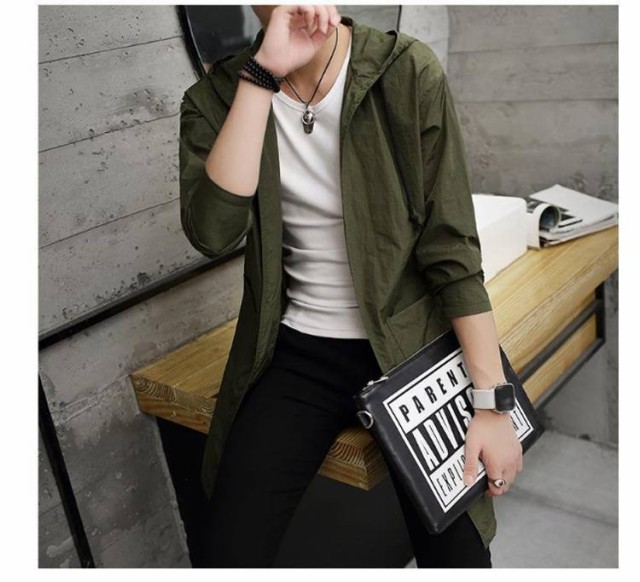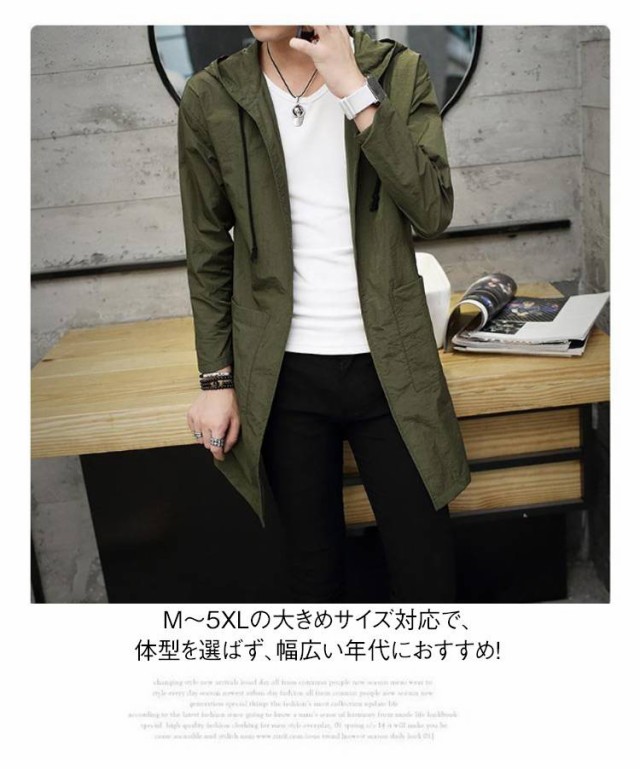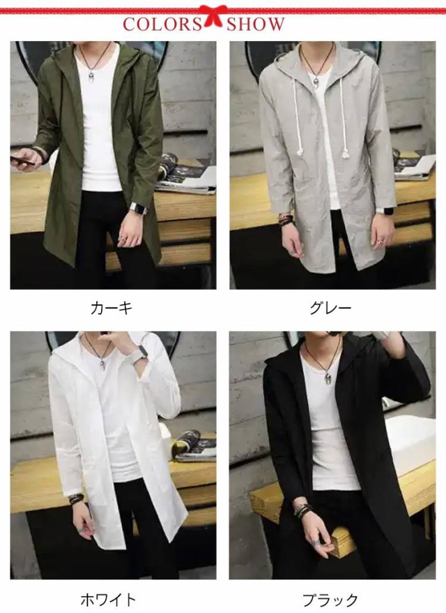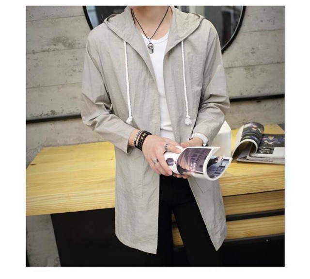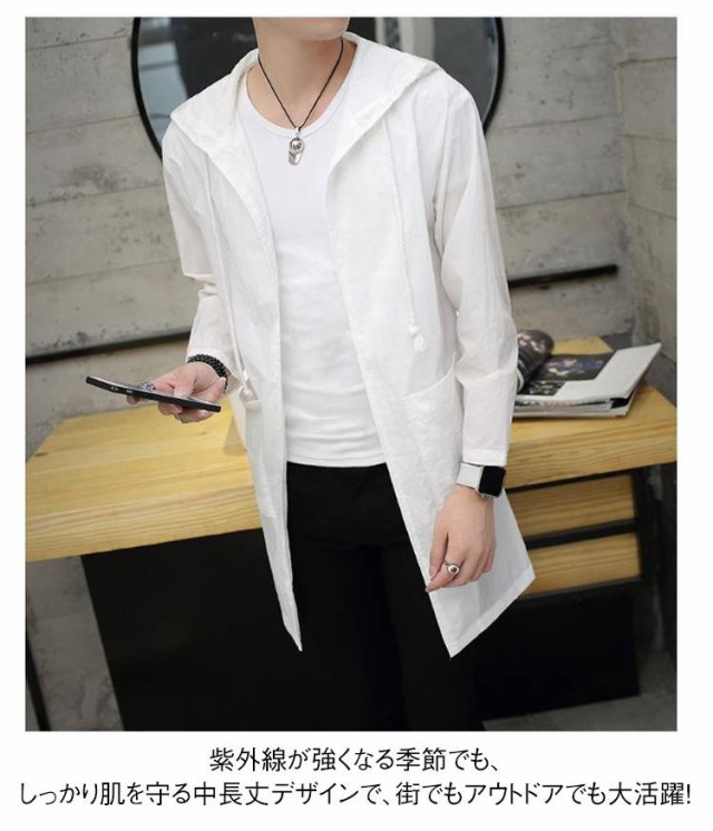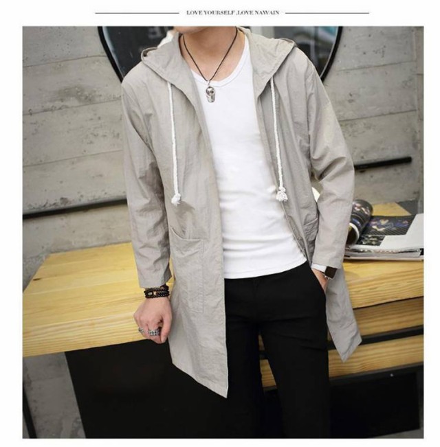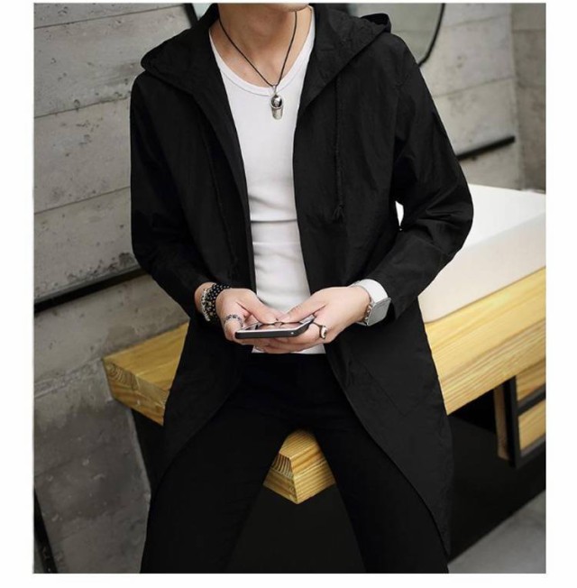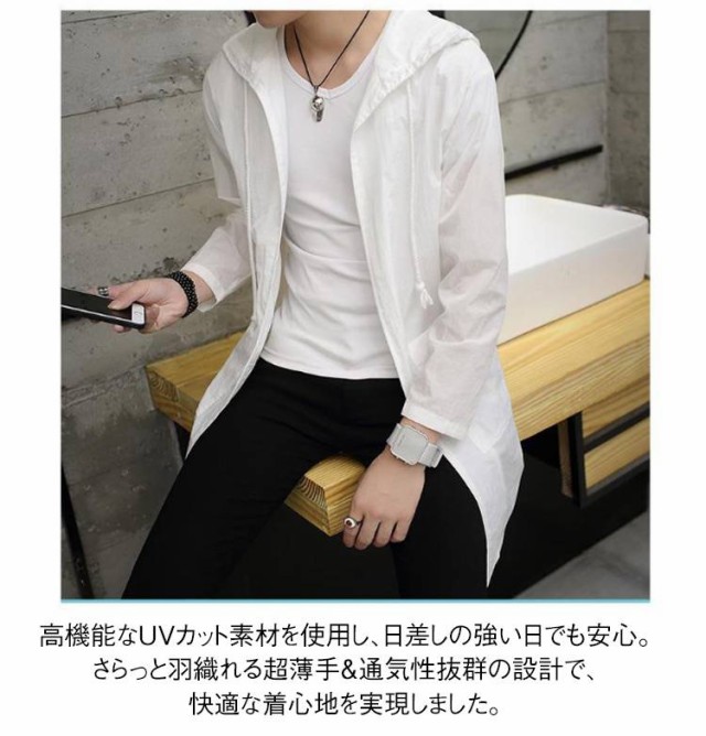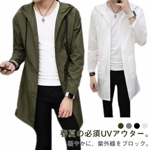フード付きコート メンズ UVカット ウインドブレーカー 薄手 ジャケット 男性用 夏用アウター ジャケット 大きいサイズ 軽量 春夏 ロングジャケット 送料無料