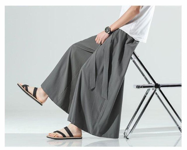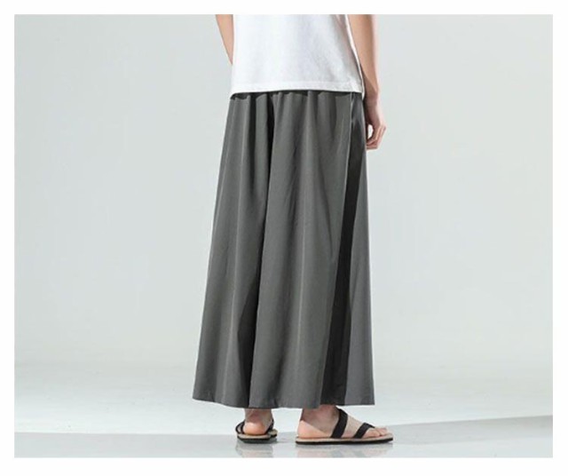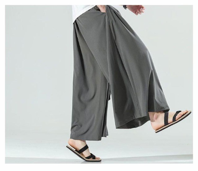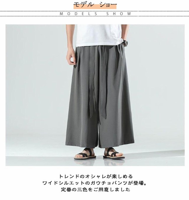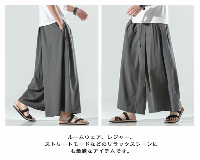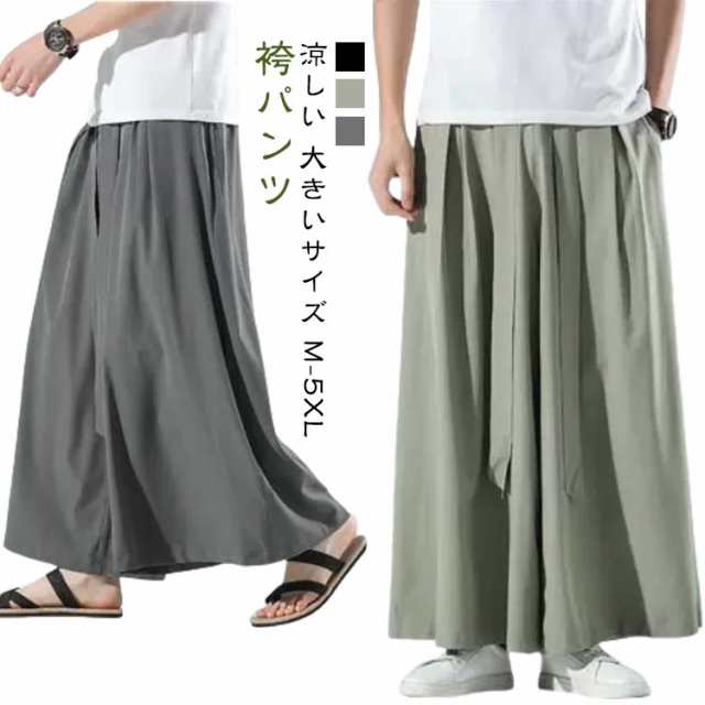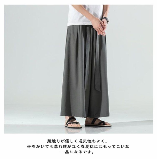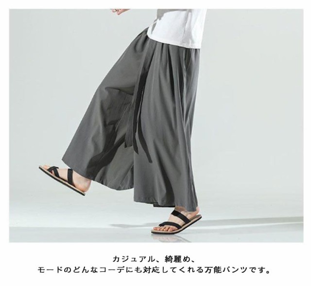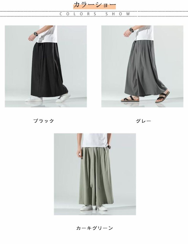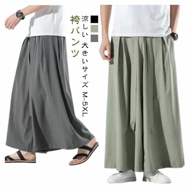 接触冷感 パンツ 袴パンツ 大きいサイズ メンズ ワイドパンツ メンズ 春夏 ビッグシルエット ガウチョパンツ 涼しい ヒップホップ サルエル ロングパンツ メンズ 無地 九分丈 ズボン ダンス スカンツ サルエルパンツ 9分丈 ロング丈 黒 ブラック グレー