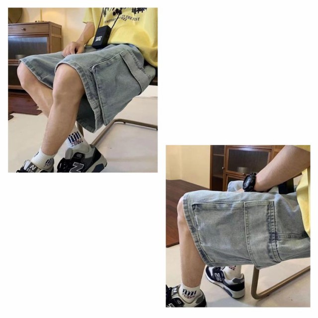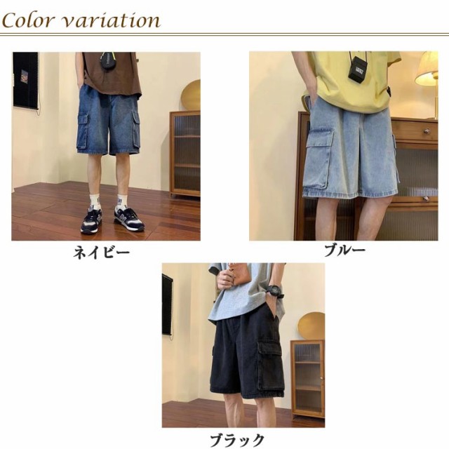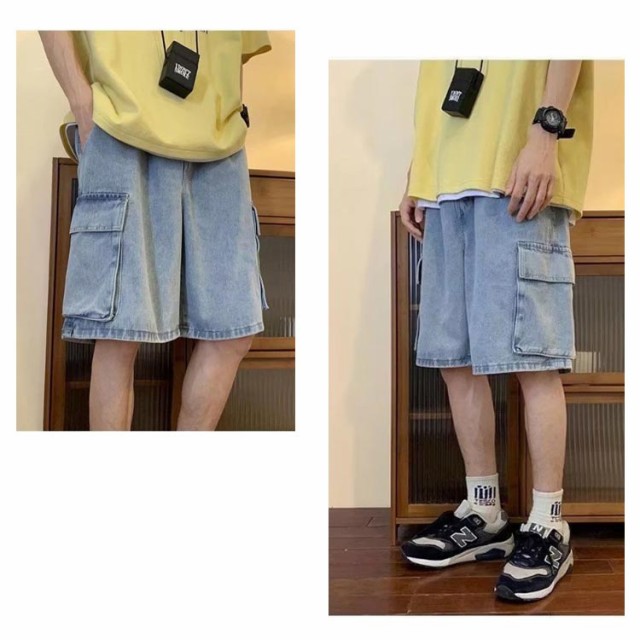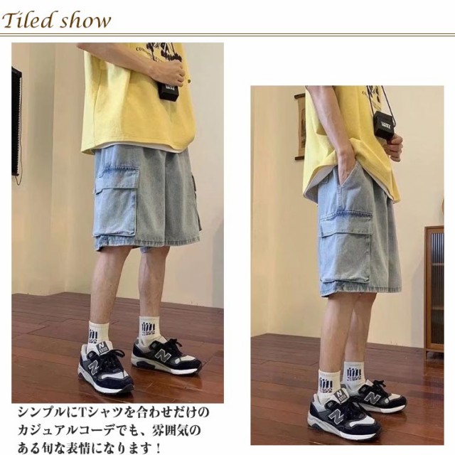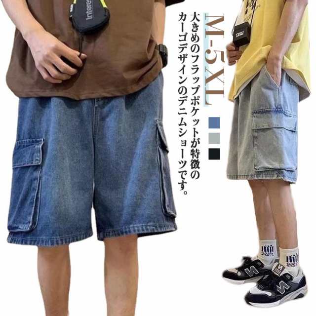 ワイドパンツ カーゴショーツ デニムパンツ カーゴパンツ ショートパンツ 半ズボン ジーンズ ハーフパンツ スケーター メンズ ストリート 短パン パンツ おしゃれ ボトムス 男性 太い 太め ルーズ ゆったり