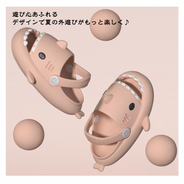 | かわいいサメデザインで子ども大喜び! つま先保護!防衝突設計で安心 ユニークでポップなサメのフォルムは、男の子も女の子も大好き!遊び心あふれるデザインで夏の外遊びがもっと楽しく♪ 滑り止めソールで安心の歩行サポート アウトソールには滑り止め加工が施されており、濡れた地面やプールサイドでも滑りにくく、安全に遊べます。 速乾素材で水遊びにも最適! 濡れてもすぐに乾く素材を使用しているため、海・プール・お風呂上がりなど様々なシーンで大活躍。 かかとベルト付きの2WAY仕様 かかとストラップでフィット感アップ。ストラップを前に倒せばスリッパのようにも履ける2WAYタイプで、履き替えもラクラク◎ | |