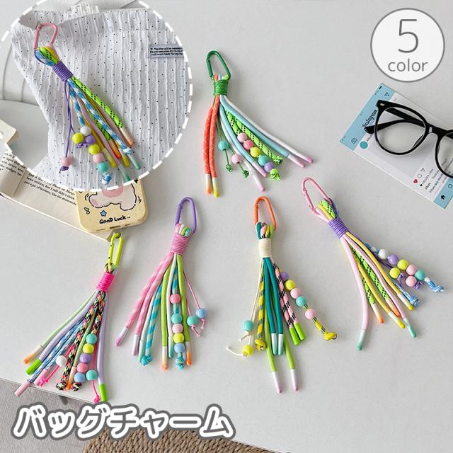 バッグチャーム キーホルダー バッグ用アクセサリー フリンジ風 ロープ カラビナ カラフル 飾り 大きめ レディース 女性 かわ