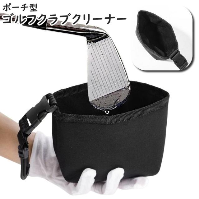 カラビナ付きのポーチ型ゴルフクラブクリーナーです。