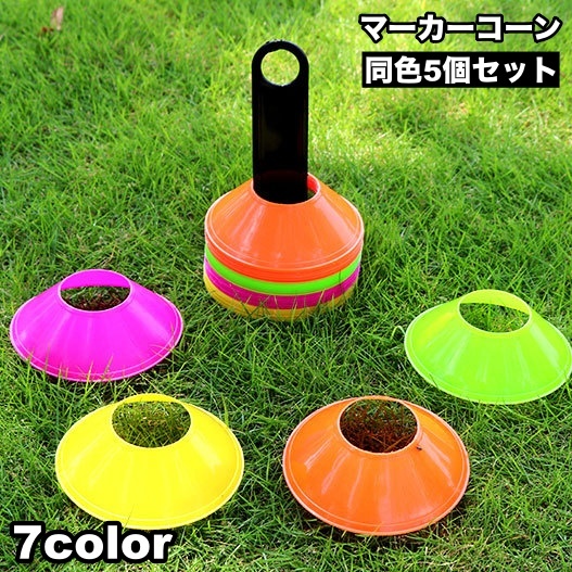マーカーコーン 5個セット カラーコーン ディスク型 円錐 フラット スポーツ 陸上 サッカー フットサル トレーニング 練習