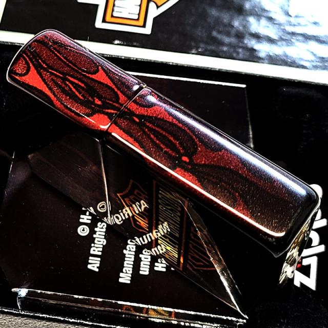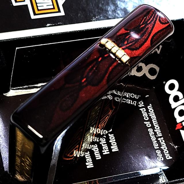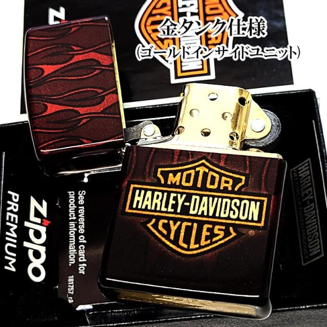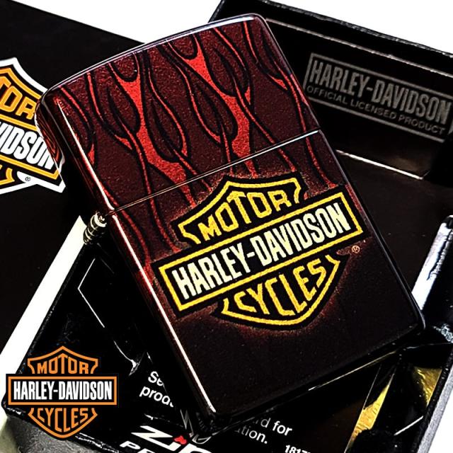 【訳あり】ZIPPO ハーレー ダビッドソン 5面加工 ロゴ ジッポ ライター 金タンク おしゃれ レッド ブラック 炎 連続プリント かっこいい 赤黒 メンズ