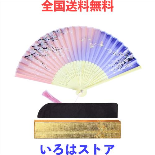【収納袋とボックス付き】扇子は長さ21cm、展開幅38cm、重さは30gぐらいで軽くて小さくてとても持ち運びやすいです。収納袋を付属して収納便利、ボックスは24*4.5*2cmで、金色も高級感があり、プレゼント包装に使えます。