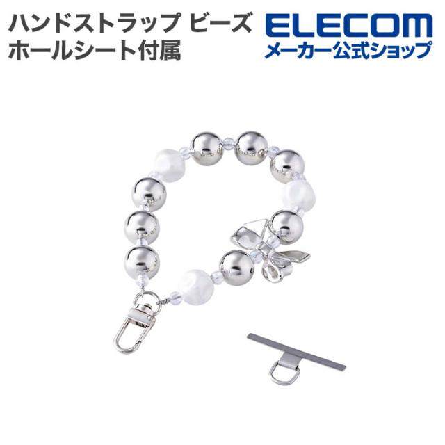 エレコム スマホ ハンドストラップ ビーズ ストラップホールシート付属 シルバー ┃P-STHBESV