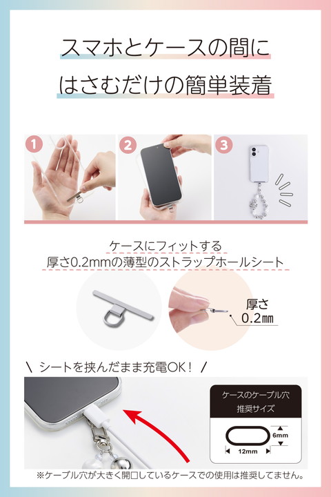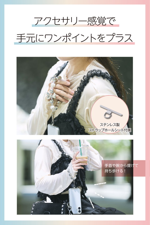 ころんとした大玉ビーズが存在感を放ち、シルバーリボンのアクセントでクールな印象も漂うハンドストラップです。手首や腕から提げて持ち歩けるので、両手がふさがらずいつでもサッとスマートフォンの操作ができます。耐久性の高いステンレスワイヤーを使用しており、見た目の華やかさと実用性を兼ね備えた仕様です。![]() ■ころんと丸い大玉ビーズが存在感たっぷりで、カジュアルな可愛さが際立つビーズハンドストラップです。 ■大ぶりビーズのボリュームと、シルバーリボンのアクセントが目を引く、メリハリのあるデザインです。 ■カラビナを1か所にまとめて、金具のがちゃつきを抑えた軽やかで使いやすい仕様です。 ■手首や腕から提げて持ち歩けるので、両手がふさがらずいつでもサッとスマートフォンの操作ができます。 ■手元のワンポイントとして活躍し、アクセサリー感覚で取り入れられるアイテムです。 ■取り外しやすいフックを使用しているので、ストラップの着脱が簡単にできます。 ■耐久性の高いステンレスワイヤーを使用しています。 ■ケースにストラップホールがなくても、付属のストラップホールシートをスマートフォンとケースの間に挟むだけで使用でき、取り外しも簡単です。 ■ステンレス製ストラップホールシート付きで、通常製品の約4倍の耐久性があります。 ※当社従来品P-STSDH2LR04BKとの比較 ■ケースにフィットする0.2mmの薄型のストラップホールシートで簡単に装着できます。 ■※ケースの種類は、ハイブリッドケース、ソフトケースをご使用ください(ケース背面が硬い素材のものを推奨します)。シリコン製のケースには使用しないでください。 ■※ケーブル穴が大きく開口しているケースでの使用は推奨してません。 ■※耐荷重は約10kgまでです。また、250g以上の機器本体には使用しないでください。 ■自社環境認定基準を1つ以上満たし、『THINK ECOLOGY』マークを表示した製品です。 ■環境への負荷軽減のため、輸送効率を高める設計の外装箱を使用した製品です。 ![]() ■サイズ:ハンドストラップ:全長約265mm、ストラップホールシート:W約45mm×D約0.2mm×H約23mm ■耐荷重:約10kgまで ※250g以上の機器本体には使用しないでください。 ■セット内容:ショルダーストラップ、ストラップホールシート(1口)1枚 ■材質:ハンドストラップ:ABS・亜鉛合金、ストラップホールシート:ステンレス ■カラー:シルバー |