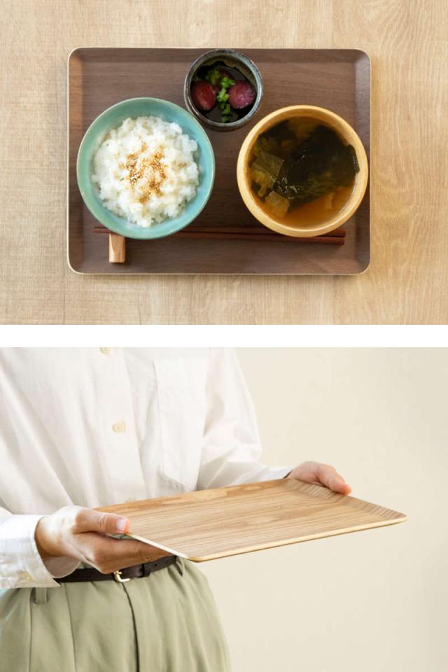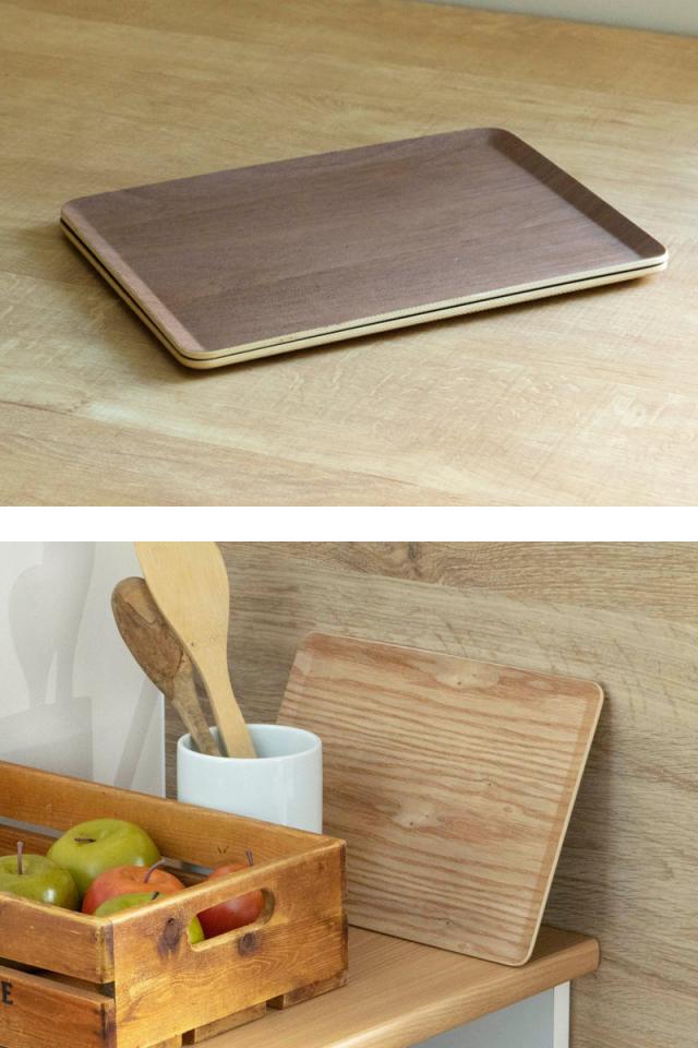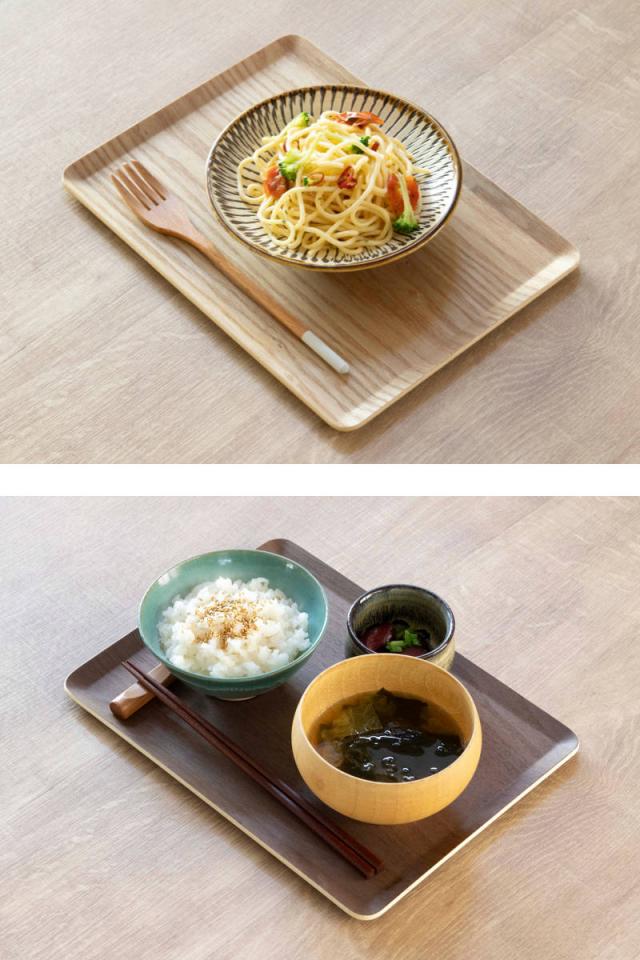 朝食やティータイムに使いやすい小さめです。一人暮らしの方にもおすすめのサイズです。おしゃれな木目調のトレーは、和洋問わずどんなお料理も引き立ててくれます。