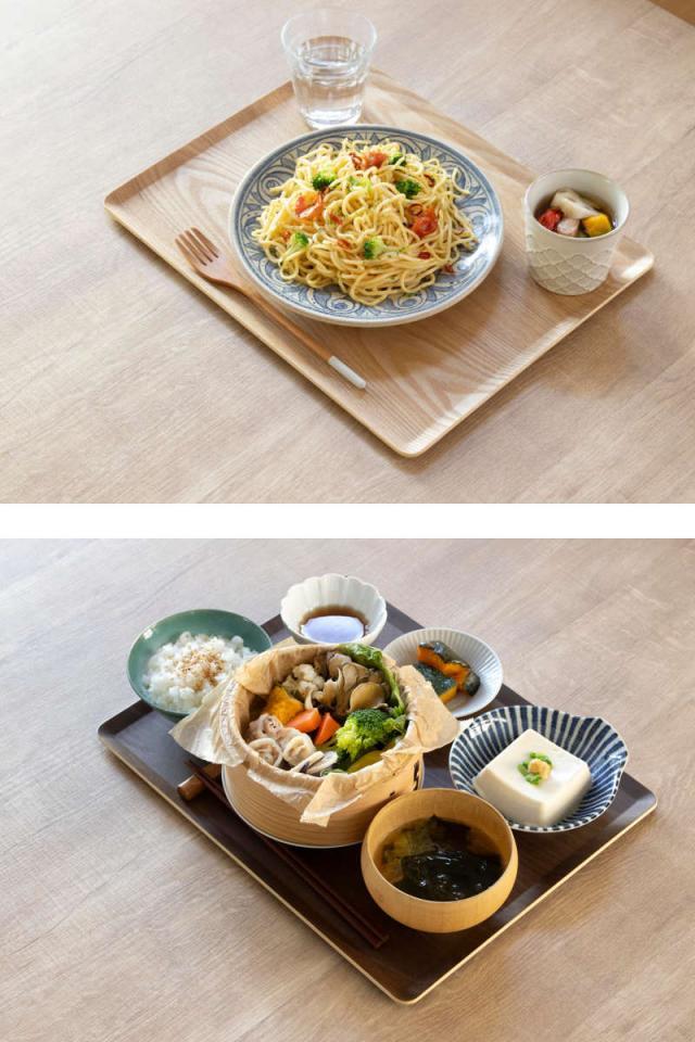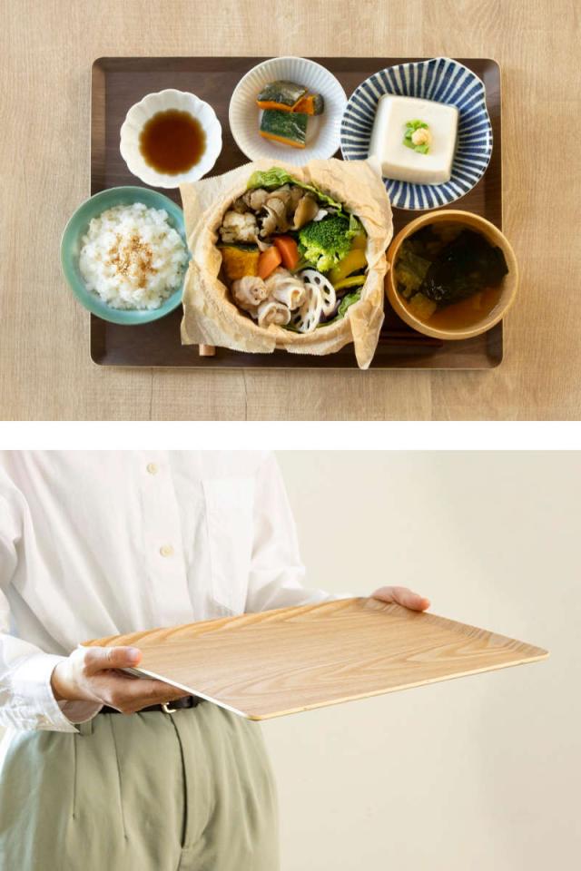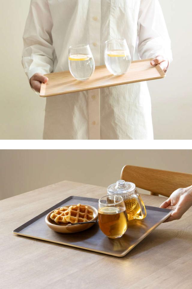 ランチや夕食の配膳時にも便利なトレーは、1人分を1回で運べるのでキッチンとダイニングを往復する手間を省けます。