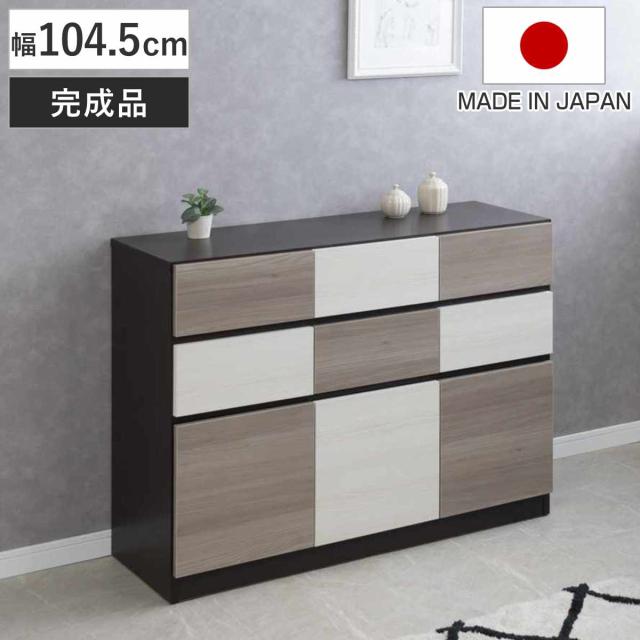 キャビネット 幅104.5cm グレートーン 日本製 完成品 ( 棚 ラック スクエア バイカラーA4対応 2段6杯 グレー A4サイズ シンプル 配線穴 スライドレール )