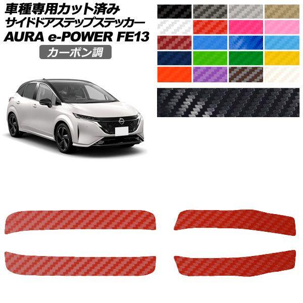 カーステッカー 日産 オーラ FE13系 前期 2021年08月〜2024年06月 カーボン調 サイドドアステップ 外装 選べる20カラー 入数:1セット(4枚) AP-PF2CF0305