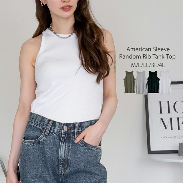 春新作 ランダムリブ アメリカンスリーブタンクトップ レディース 大きいサイズ