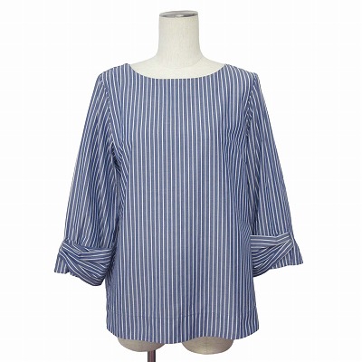 【中古】オットー コレクション OTTO collection ブラウス 七分袖 ストライプ L 紺 レディース