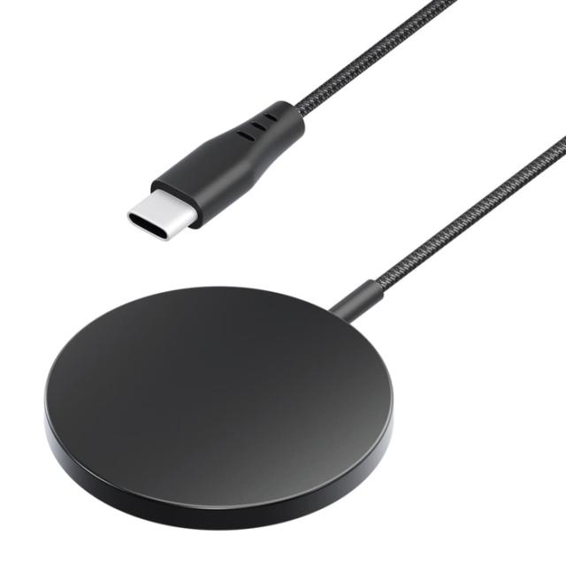 マグネット式 ワイヤレス充電器 USB Type-C 一体型ケーブル 1.2m ブラック 充電 ワイヤレス マグネット充電 タイプC タイプシー 黒 外出先 agSafe対応 ケーブル一体型 iPhone 急速充電 置くだけ充電 薄型 コンパクト